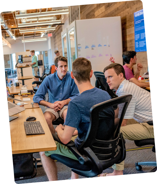 In this space, Collaborate or work in a lively, open environment.